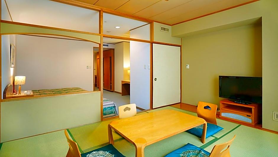 The spacious quadruple room features air conditioning, tatami, as well as a private bathroom boasting a bath and a shower. The quadruple room offers a flat-screen TV, a seating area, a wardrobe, a safe deposit box as well as mountain views. The unit has 2 beds and 2 futons.